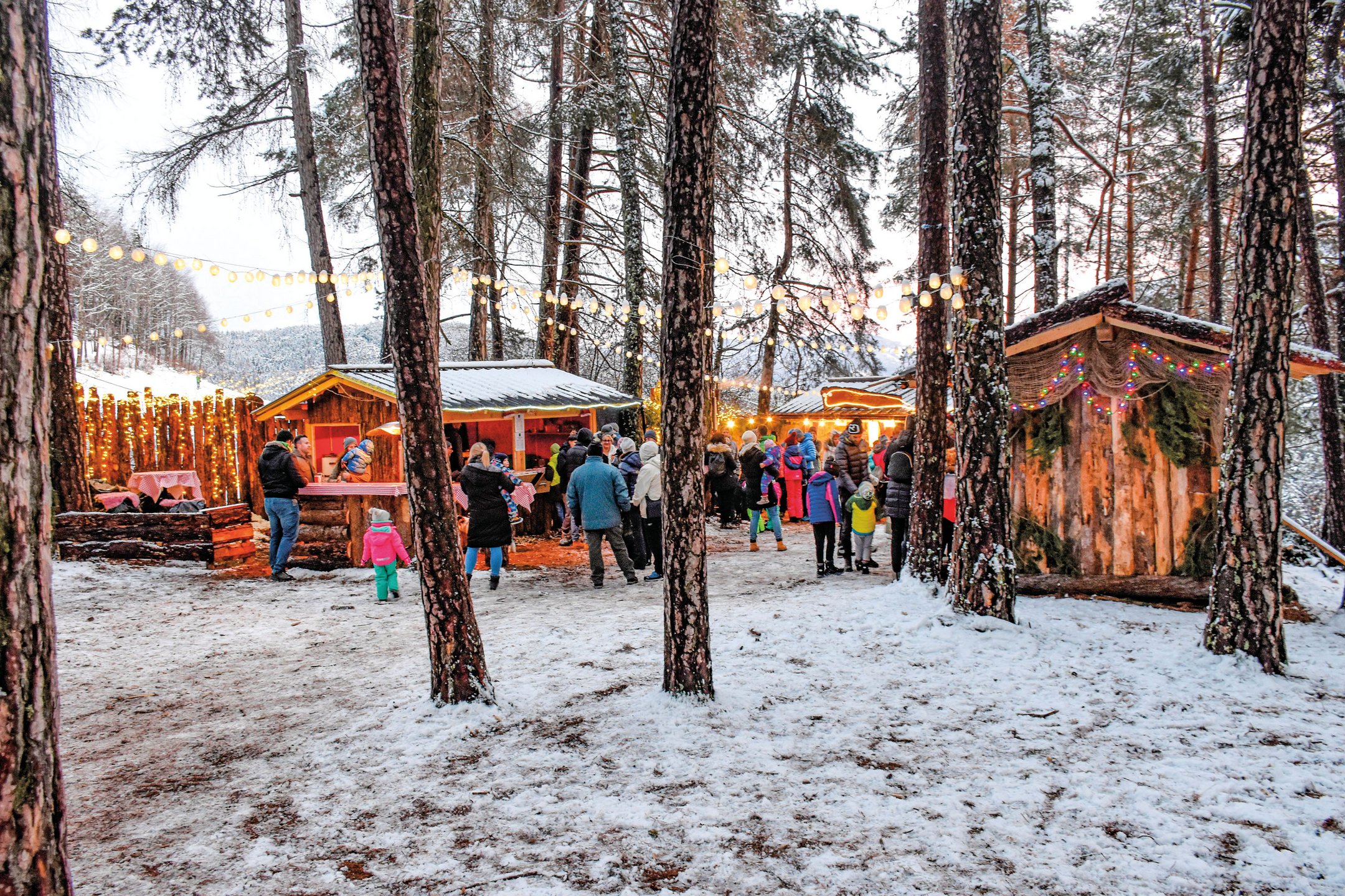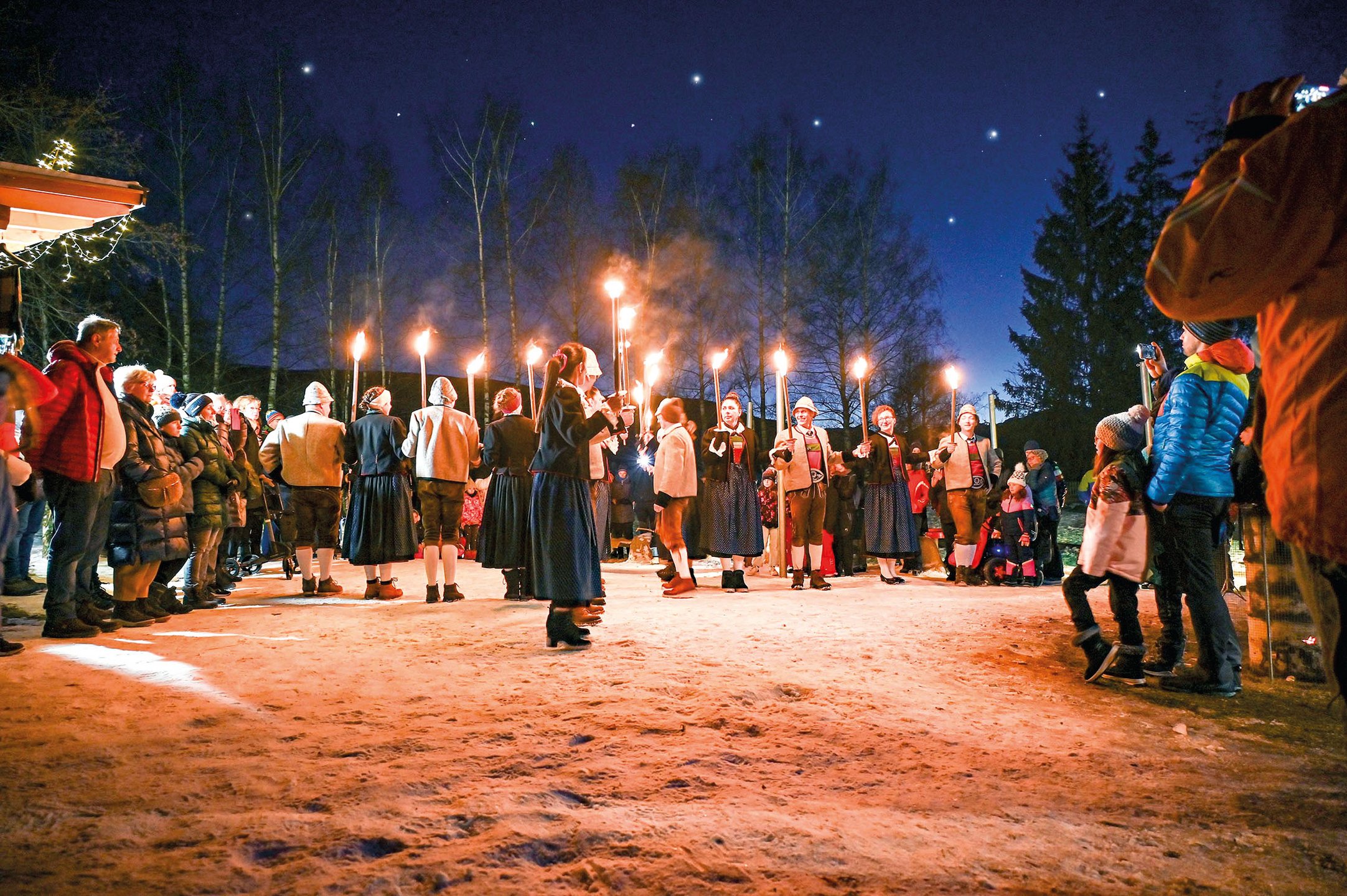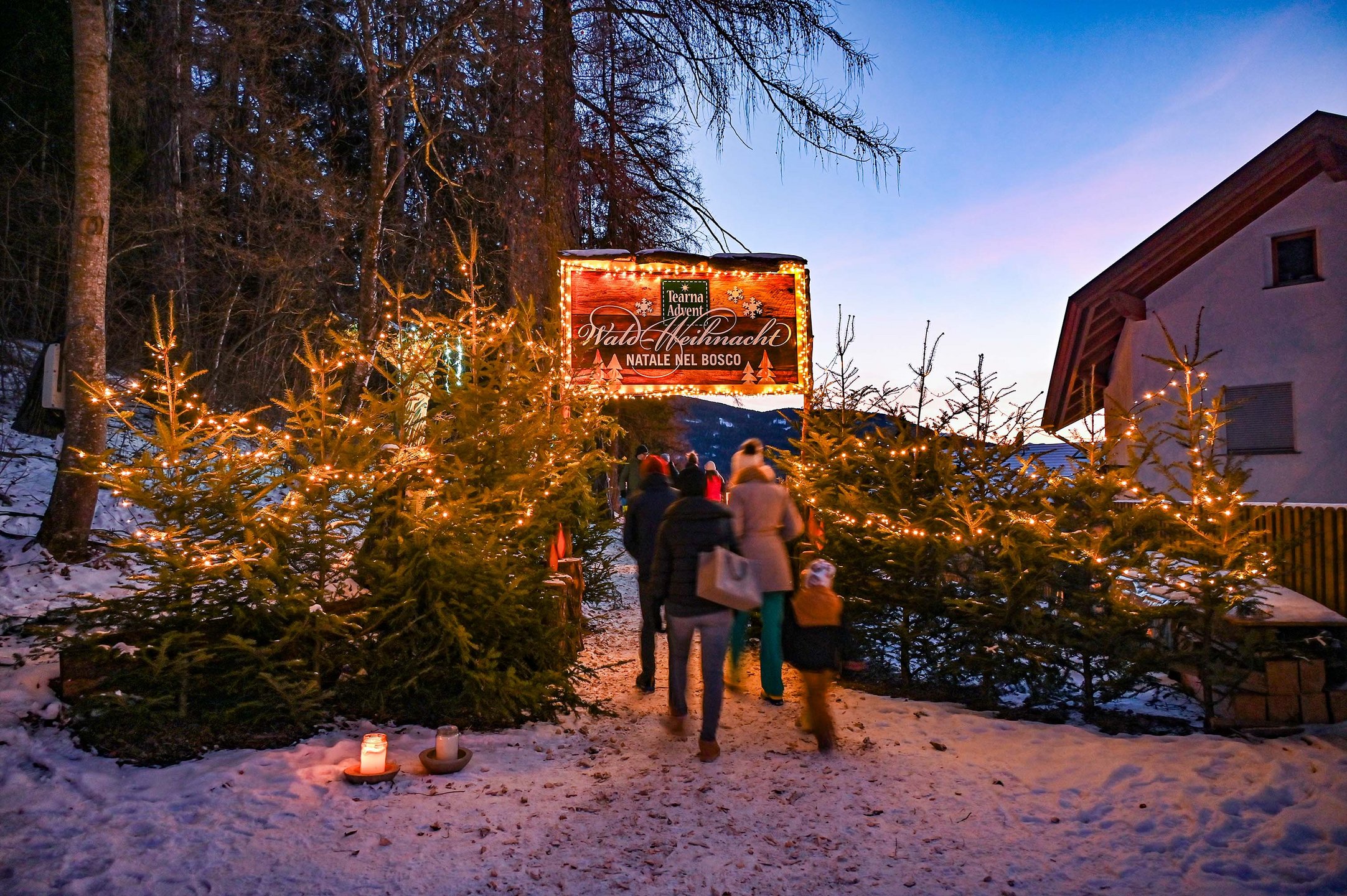 Si continua illuminando la strada con la luce delle fiaccole fino al bosco “Stockner Waldile“, dove oltre ad un presepe, nelle tradizionali casette, troverete specialità contadine e prodotti fatti a mano.