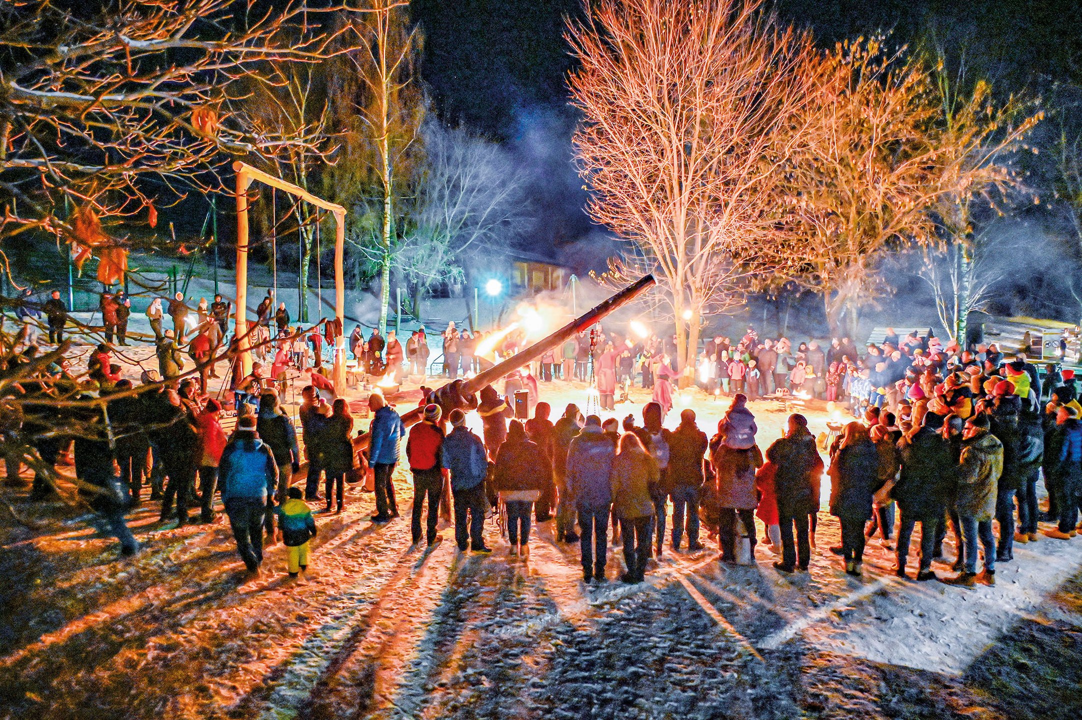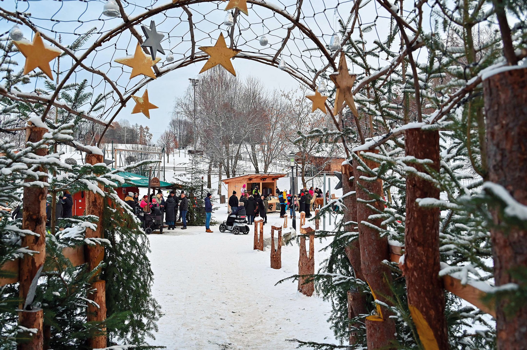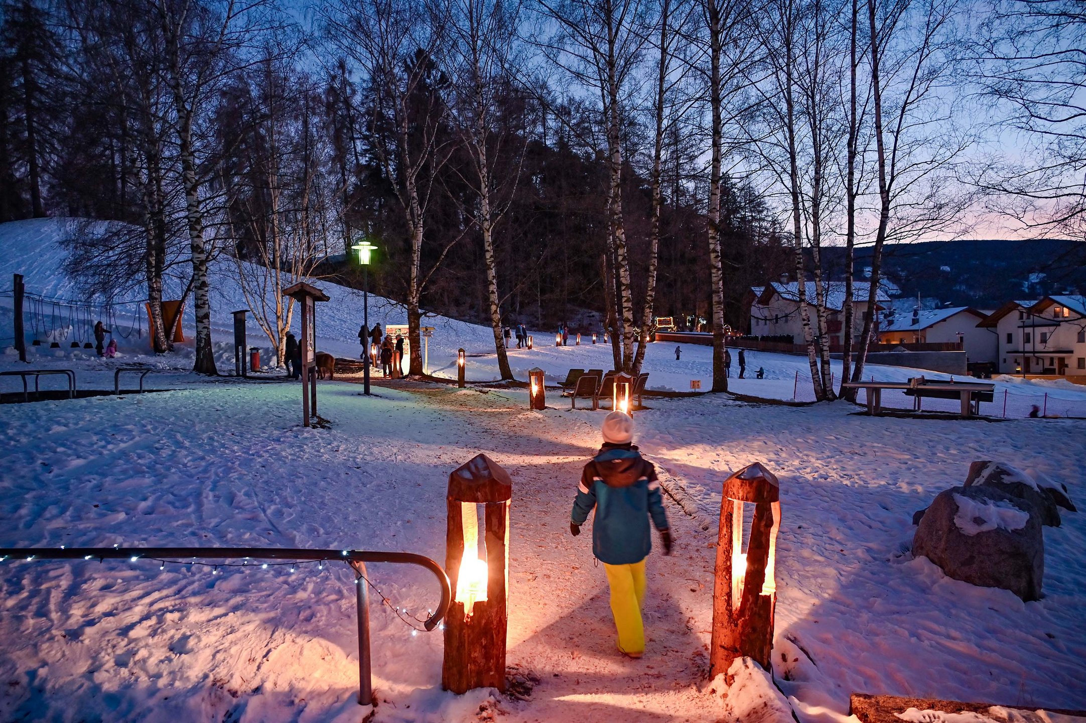 Si continua illuminando la strada con la luce delle fiaccole fino al bosco “Stockner Waldile“, dove oltre ad un presepe, nelle tradizionali casette, troverete specialità contadine e prodotti fatti a mano.